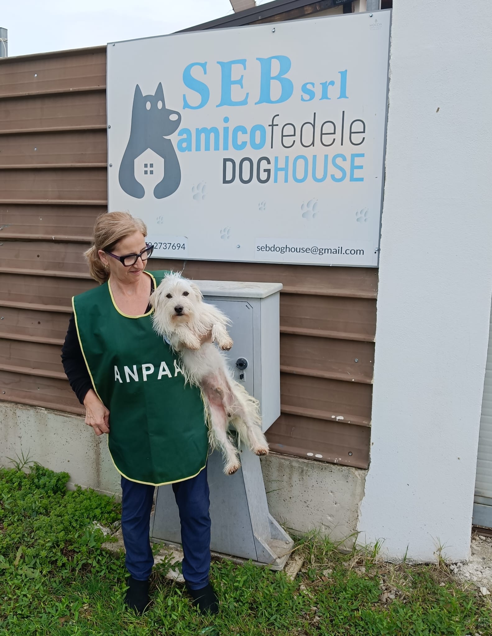 Nella foto vedete una delle persone che, con passione e costanza, ci supporta nell’accudimento e nell’adozione dei nostri amici a quattro zampe